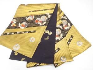 斜め縞に蝶・花模様織り出し 全通袋帯