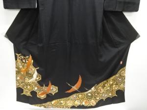 作家物 群鶴に草花模様刺繍留袖(比翼付き)