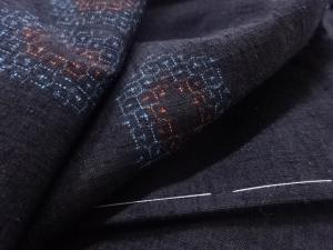 未使用品 仕立て上がり 亀甲模様織り出し本場結城紬80亀甲着物(石下)