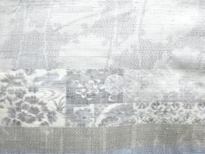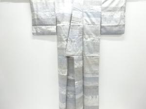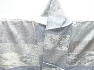 横段に草花風景模様織り出し本場結城紬100亀甲着物(石下)