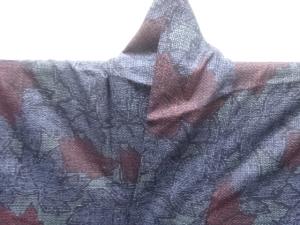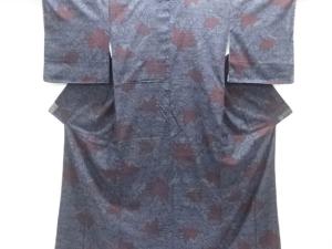 未使用品 仕立て上がり 重要無形文化財本場結城紬80亀甲 楓模様織り出し着物