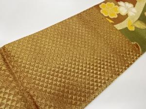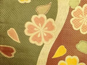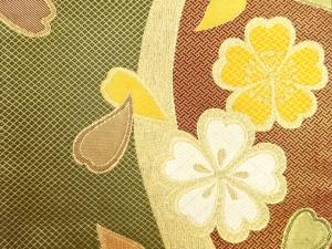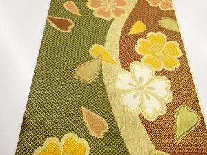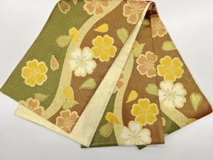 本場筑前博多佐賀錦よろけ縞に桜模様織出し袋帯