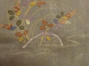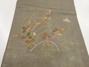 引箔萩に蝶・垣根模様織出し名古屋帯