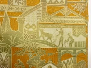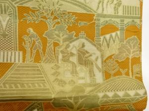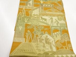 本場筑前博多エジプト人物に建物・木々模様織出し名古屋帯