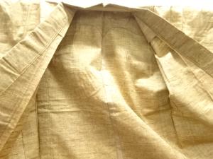 変わり横段に市松模様織り出し手織り紬単衣着物