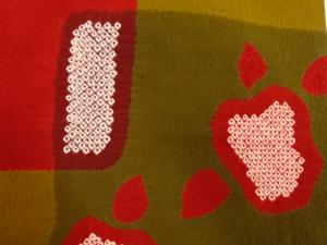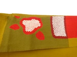 ふくれ織絞り四角に抽象花模様名古屋帯