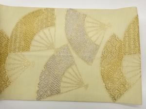 紗 扇に古典柄模様織出し開き名古屋帯(額縁仕立て)