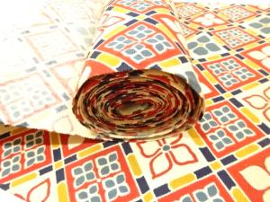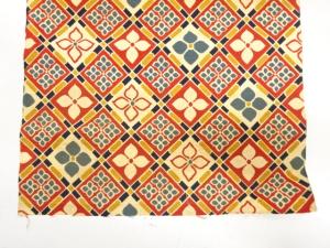 アンティーク 斜め格子に花模様 八寸帯地反物