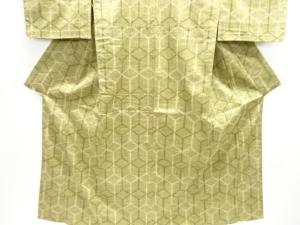 未使用品 亀甲繋ぎ模様織り出し手織り紬単衣着物