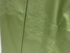 未使用品 扇青海波模様織り出し一つ紋付け下げ色無地着物