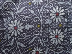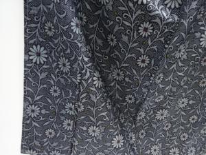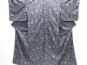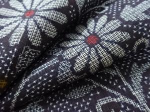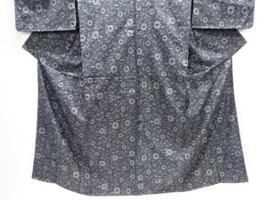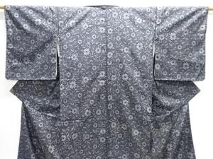 アンティーク 花唐草模様織出し本場正藍泥染大島紬着物(割り込み絣)