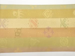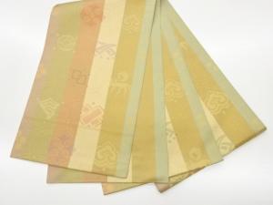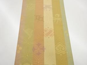 あらいそ製 宝尽くしに変わり七宝・縞模様織出し全通袋帯