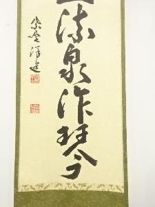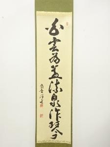 前大徳 福代洋道筆 「白雲為蓋流泉作琴」 一行書肉筆紙本掛軸