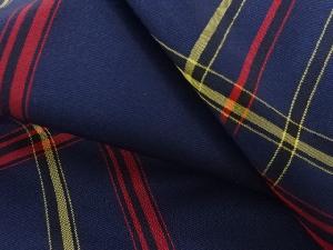 洗練された落ち着きのある色合いで、生地そのものは柔らかく、しわになりにくいと言われている。大島紬の特徴とも言える、織締めと呼ばれる技法で藍を用いて染められた糸を使用している。