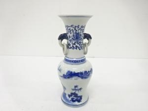 染付 山水 耳付花生
