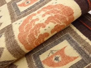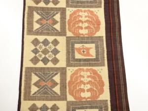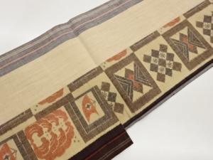 手織り紬色紙に幾何学模様織出し名古屋帯