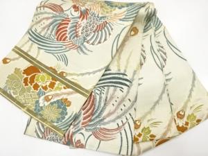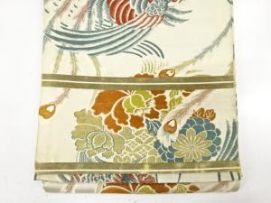 アンティーク 鳳凰に花薬玉模様織り出し丸帯(材料)