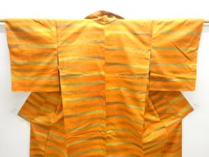 未使用品 横段織り出し手織り紬着物