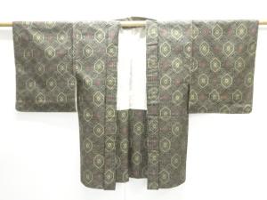 亀甲に抽象模様織り出し本場村山大島紬着物アンサンブル