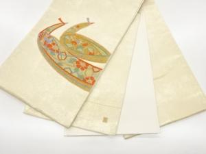 作家物 引箔パッチワーク絽刺し抽象鳥模様袋帯