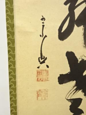 前大徳 西垣宗典筆 「白鶴舞老松」一行書 肉筆紙本掛軸