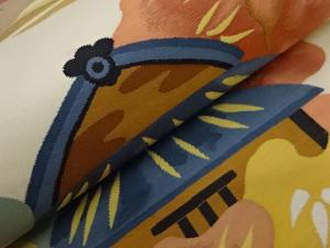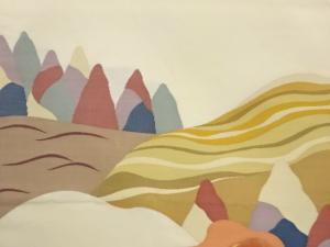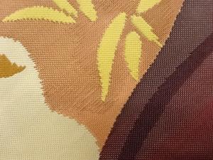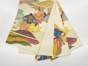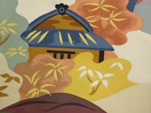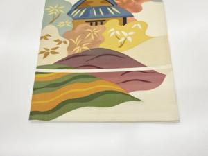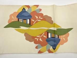 民家に山並み・木々・風景模様織出し洒落袋帯