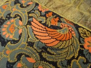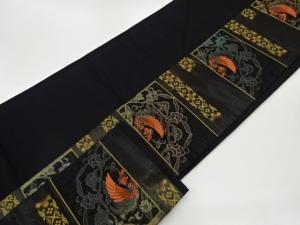 長谷川織物製 引箔色紙に裂取鳳凰文織出し名古屋帯