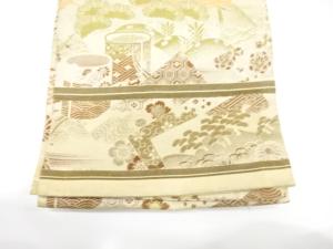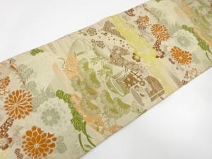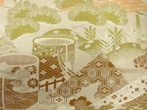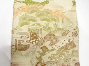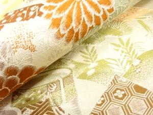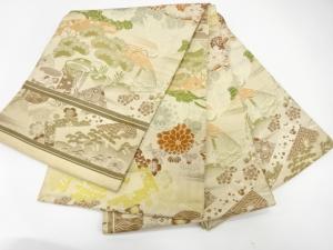 アンティーク 鶴に貝桶・草花模様織り出し丸帯(材料)