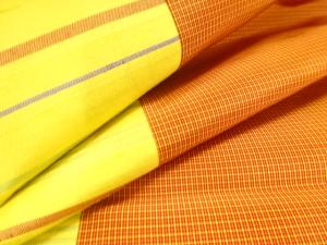 横段に菊笹模様織り出し手織り節紬着物・名古屋帯セット