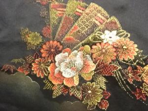 檜扇に草花模様織出し一ツ紋絵羽織