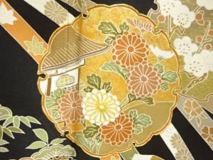 熨斗・雪輪に草花模様刺繍留袖(比翼付き)