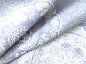 洗練された落ち着きのある色合いで、生地そのものは柔らかく、しわになりにくいと言われている。大島紬の特徴とも言える、織締めと呼ばれる技法で藍を用いて染められた糸を使用している。