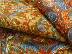花鳥更紗模様手織り紬着物