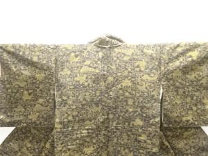 アンティーク 動物・花鳥更紗模様本場大島紬着物(染)