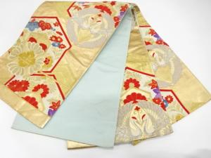 アンティーク 向かい鶴に草花・亀甲模様織り出し袋帯(材料)