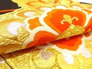 アンティーク 鏡裏に桐・向かい蝶模様織り出し袋帯(着用可)