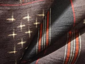 格子に絣柄織出し手織り紬着物