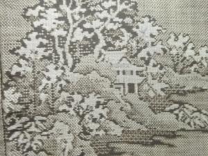 寺院風景模様織出し本場泥大島紬着物(9マルキ)