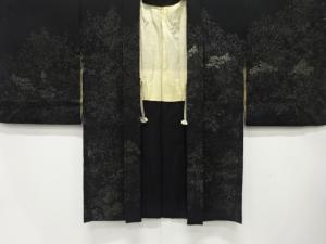 大正ロマン 漆 樹木に寺院模様織出し 一ツ紋羽織