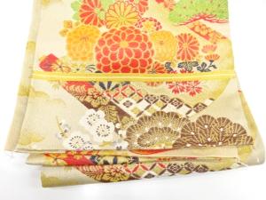 アンティーク 鶴に巻物・松・梅模様織り出し丸帯(着用可)