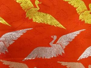 アンティーク 群鶴に笠松模様織り出し子供帯(材料)