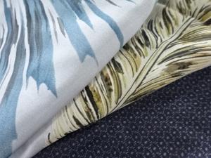 洗練された落ち着きのある色合いで、生地そのものは柔らかく、しわになりにくいと言われている。大島紬の特徴とも言える、織締めと呼ばれる技法で藍を用いて染められた糸を使用している。