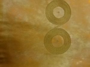 引箔金駒刺繍丸・抽象模様開き名古屋帯(額縁仕立て)