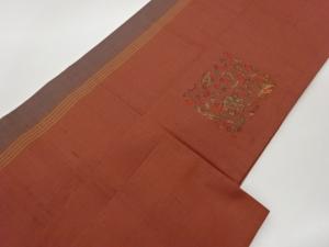 手織り紬花唐草模様織出し名古屋帯