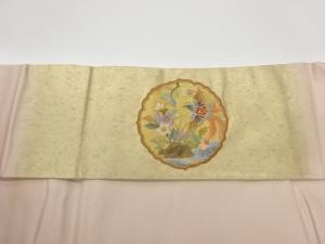 引箔流水・鏡裏に孔雀・花鳥模様刺繍名古屋帯
