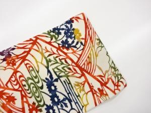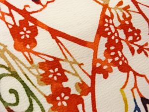 縮緬地型染地紙に観世水・花葉模様名古屋帯