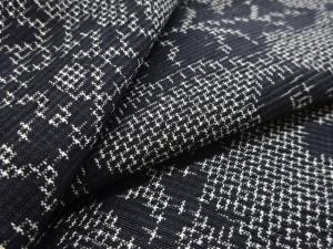 菊唐草模様織り出し十日町紬着物