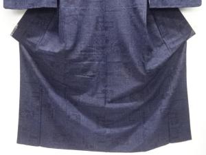 幾何学に花更紗模様織り出し本真綿結城紬着物