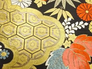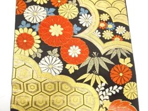 アンティーク 青海波に亀甲・桐・菊模様織り出し袋帯(材料)