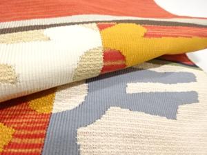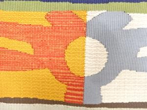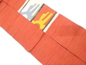 手織り紬 横段に抽象模様織り出し 名古屋帯